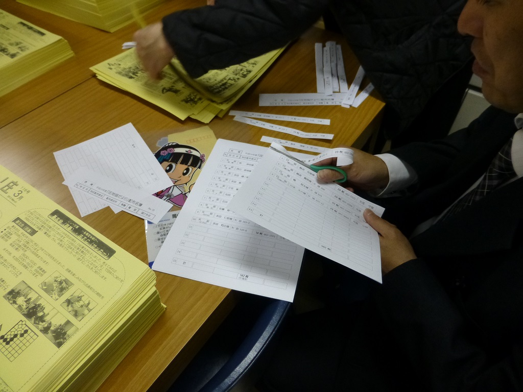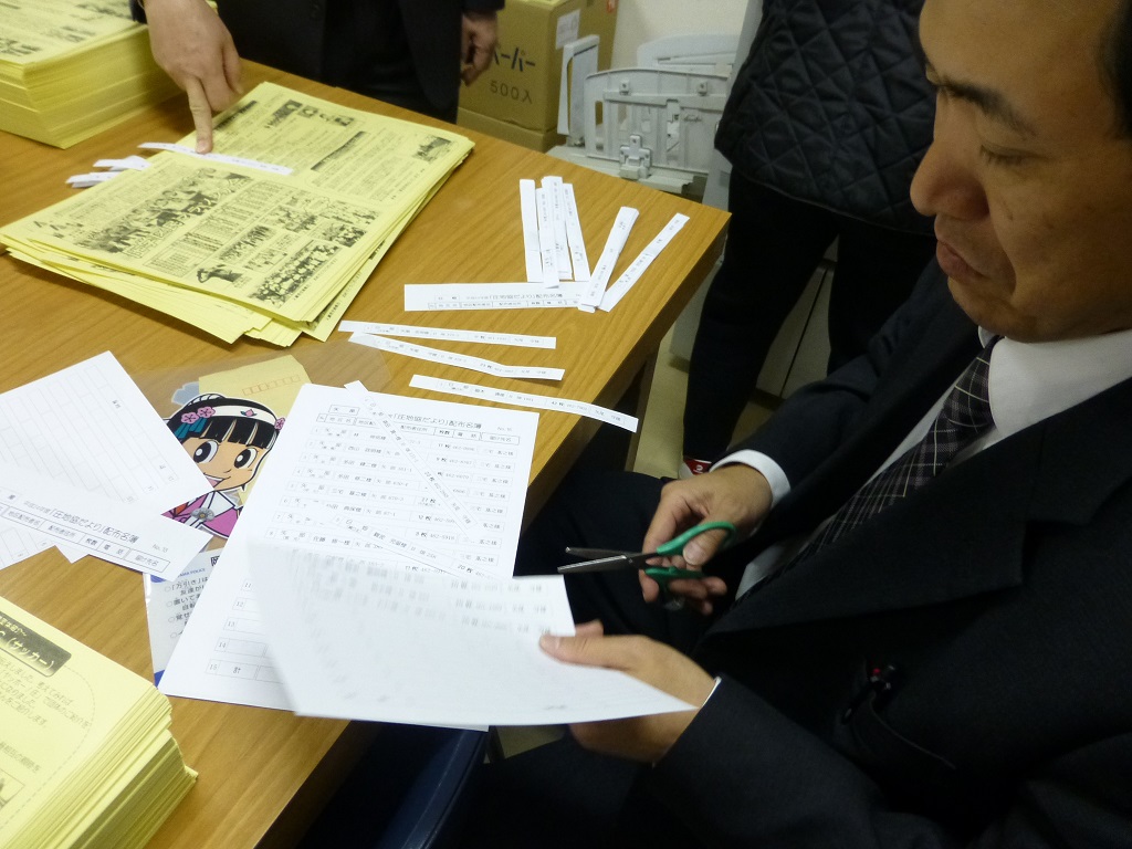 『ヤッホー!庄116号』配布に向け綴り込み作業です